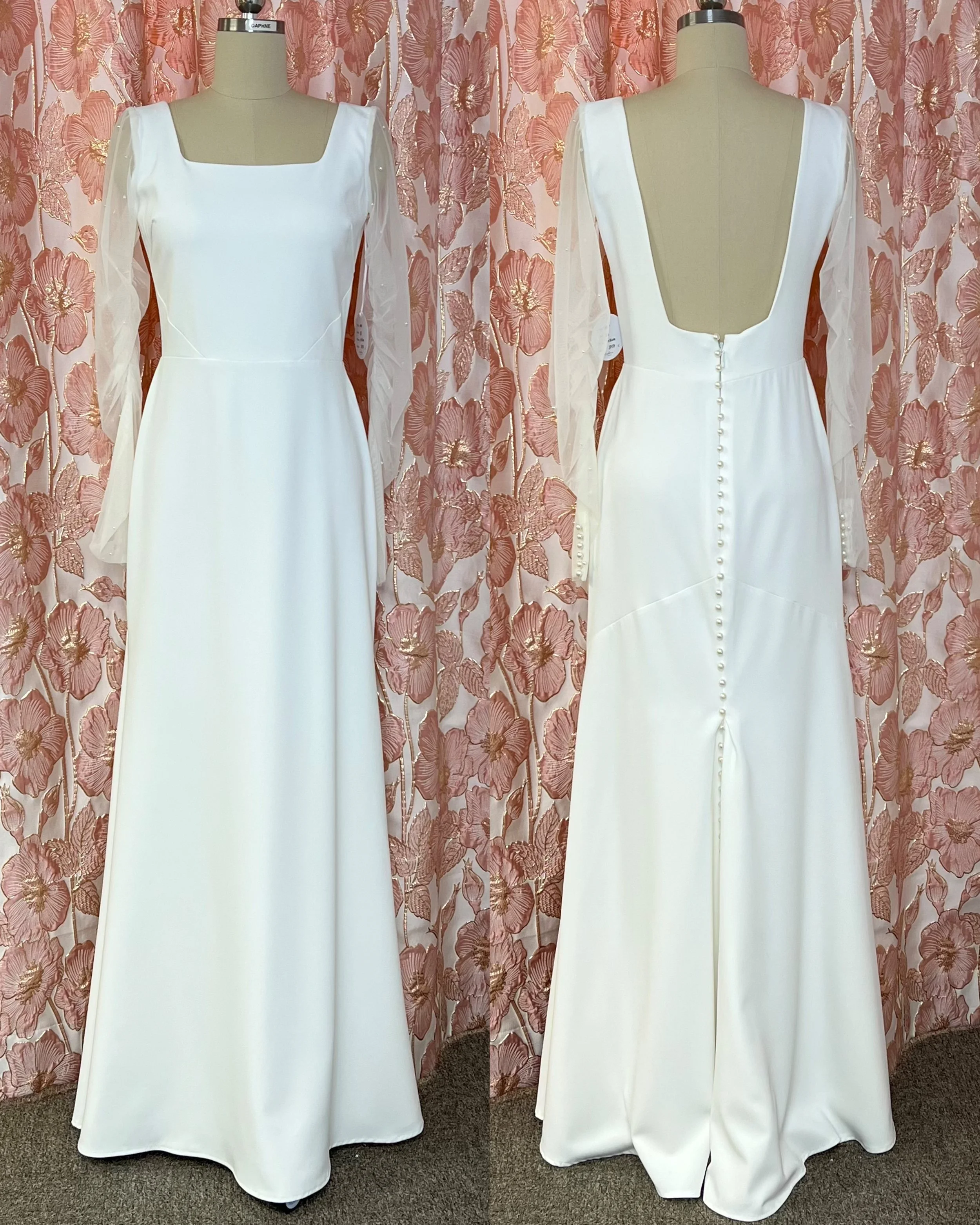 Täällä pääset tutustumaan pukuvalikoimaamme. Emme ole vielä lisänneet kaikki malleja sivustolle, joten pukuja on näkyvissä täällä vain murto-osa. Osasta mallikappalepukuja löytyy useampaa kokoa. Puvut saattavat olla neulattu mallin päälle napakaksi, joten ne voivat näyttää kuvissa pienemmiltä kuin todellisuudessa. Huomioithan, että liikkeen valikoima elää päivittäin. Päivitämme sivustoa viikottain, mutta emme sovitusten keskellä ehdi joka päivä päivittämään. Jos ihastut tiettyyn pukuun, voit tiedustella puvun saatavuutta tämän lomakkeen kautta.
