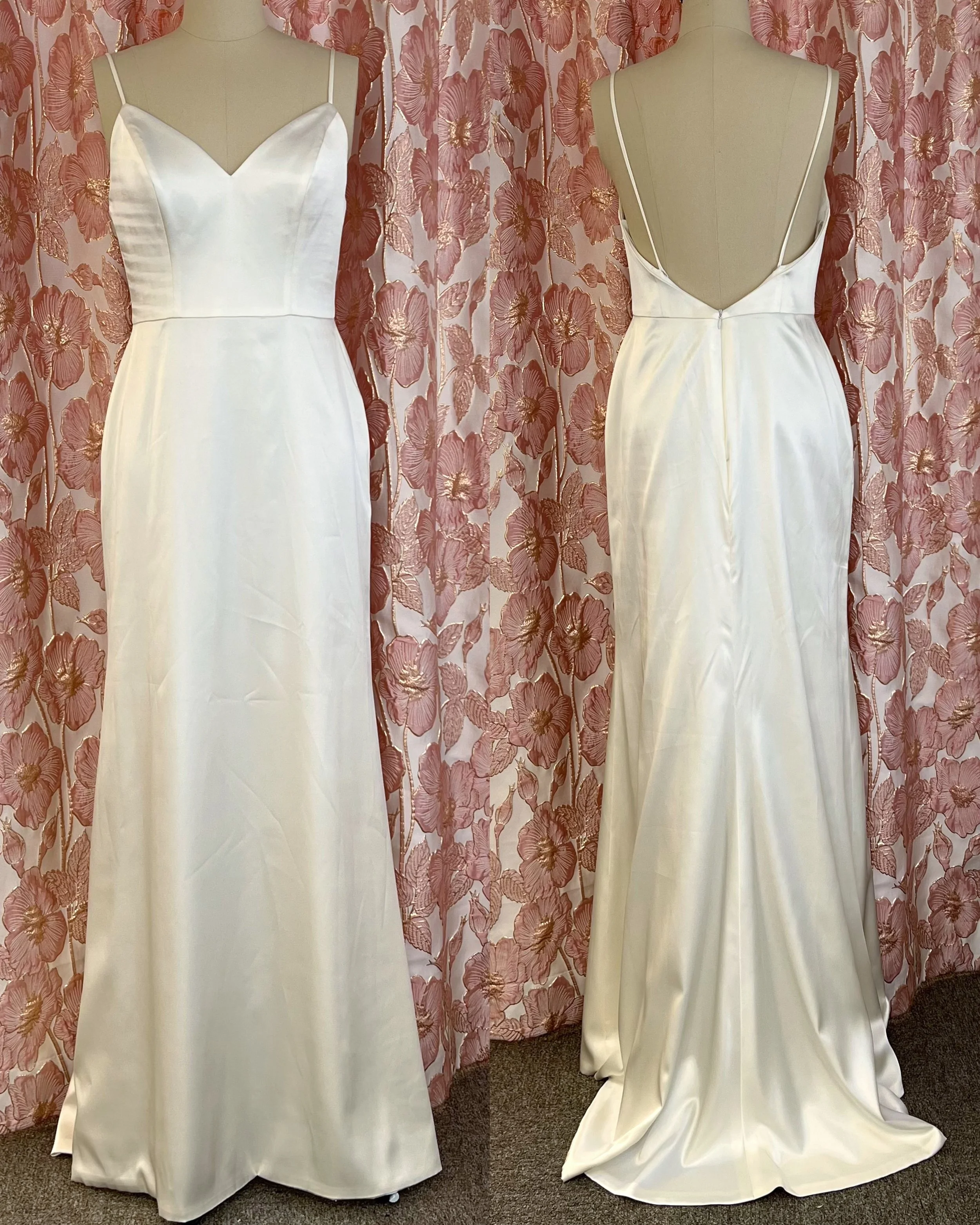 kevyt satiinihelmainen hääpuku. Sävy ivory.