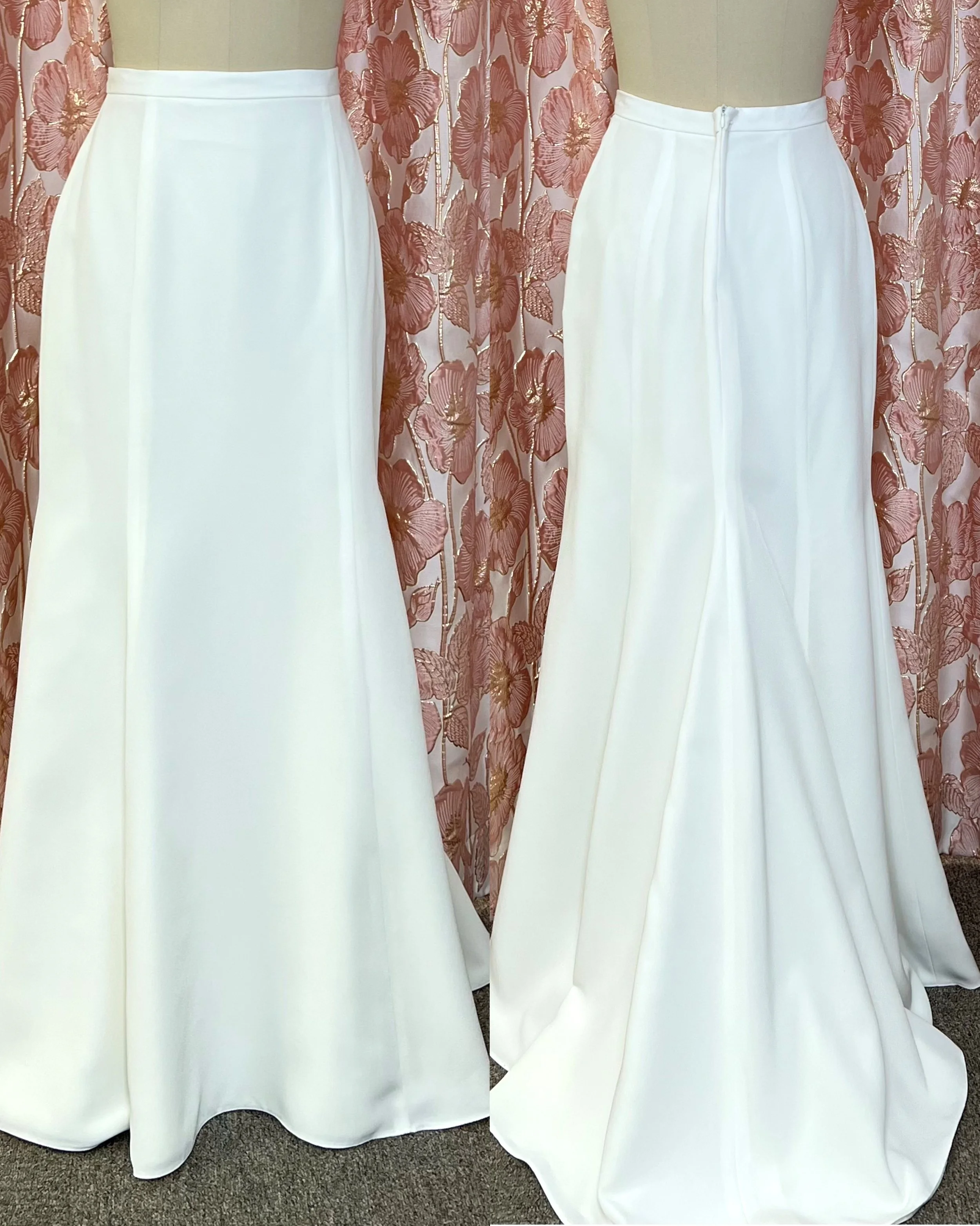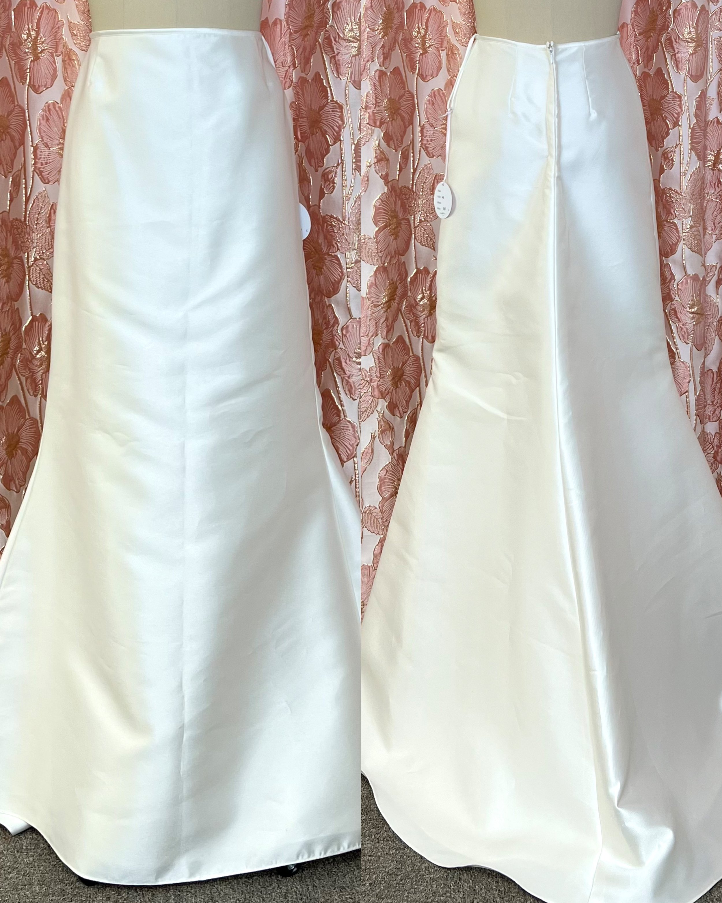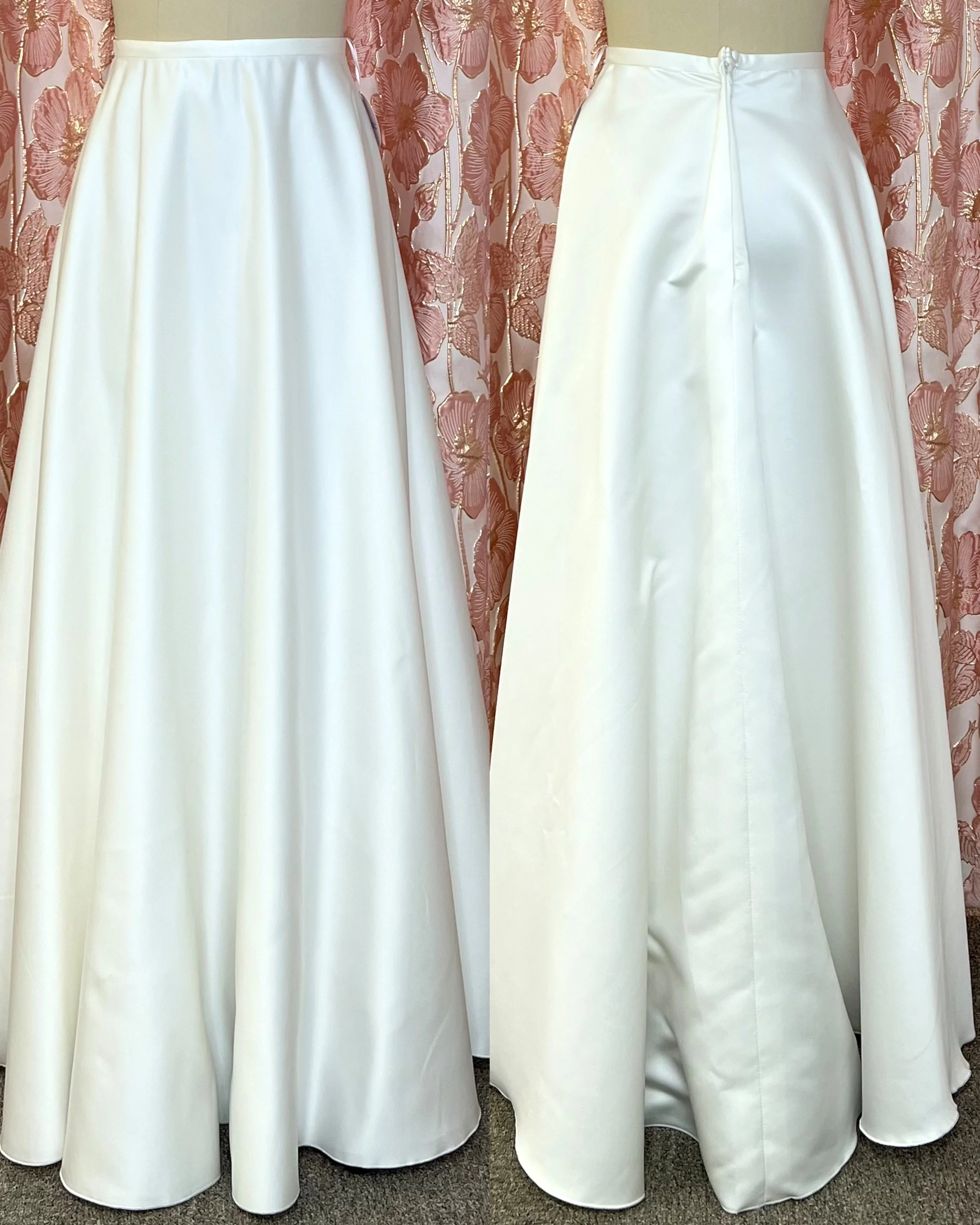 A-linjainen laahukseton satiinihame. Sävy ivory.